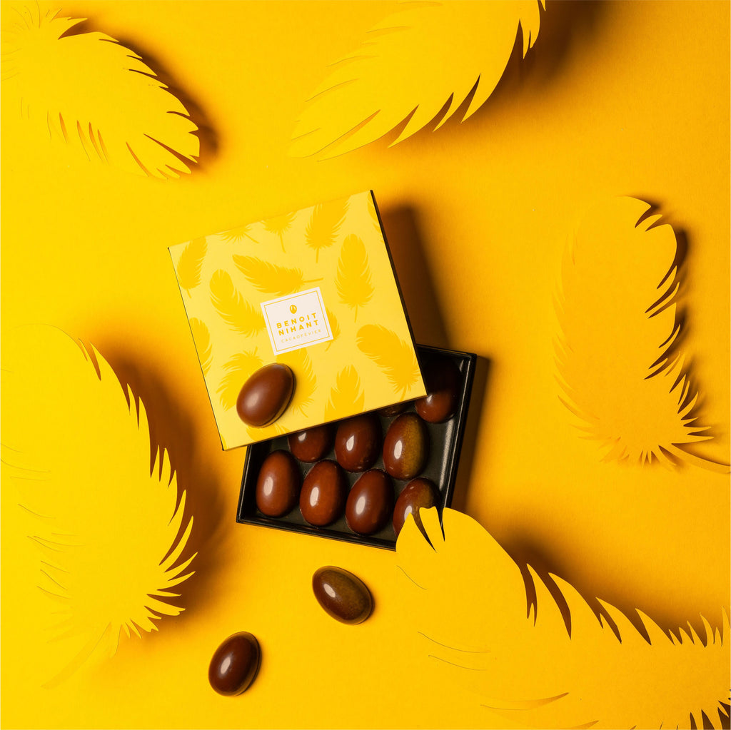 Pour concevoir sa traditionnelle collection d’Œufs Flamboyants, Benoît Nihant décline un ingrédient indissociable de ses souvenirs d’enfance : la vanille Bourbon de Madagascar. Travaillée en différentes textures, associées aux ingrédients fondamentaux de la Chocolaterie, elle structure les recettes et révèle des jeux de contrastes entre douceur, intensité et rondeur.