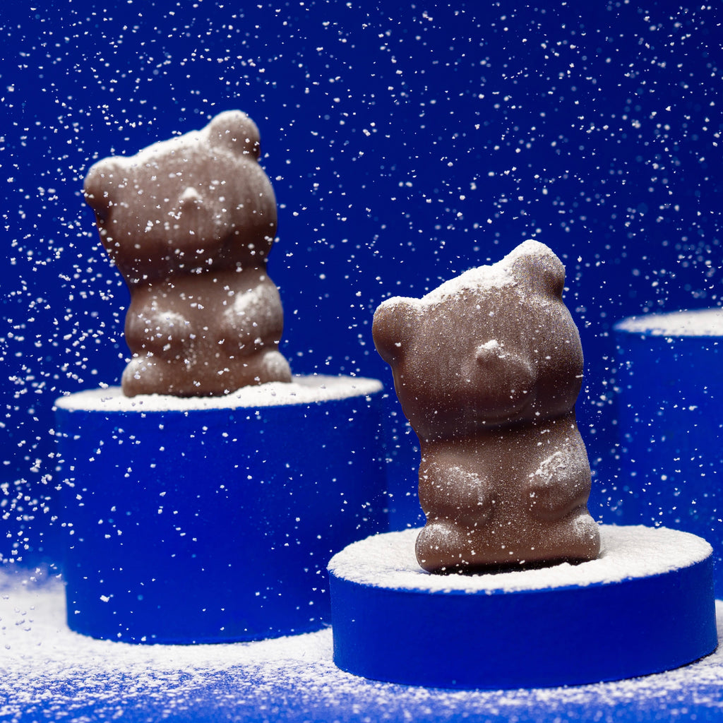 Zakje van twee beertjes. Onder hun vacht van Grand Cru chocolade uit Nicaragua verstopt zich een echte smeltende marshmallow met de smaak van vanille uit Madagaskar.